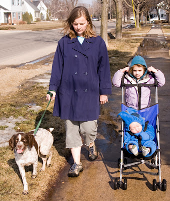 We had a brief spell of warmer weather and made it to the park for the first time in months. Abby insisted on pushing Daniel in the stroller "all by myself."